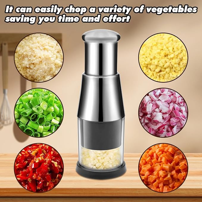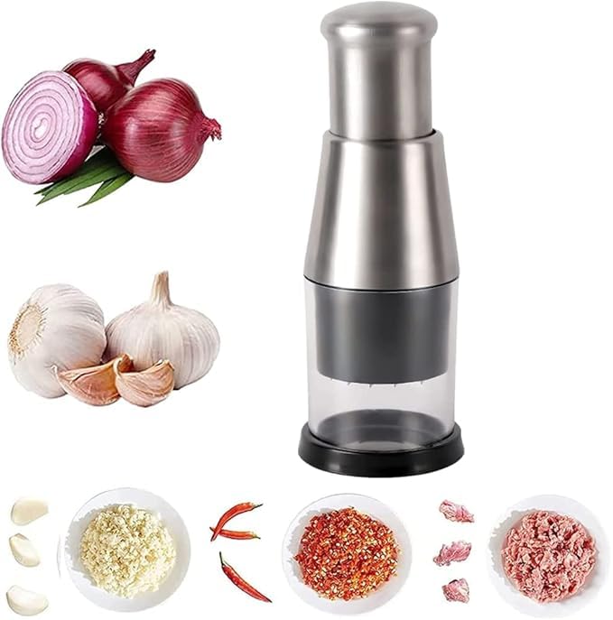 10. Compact Mini Manual Food Chopper and Garlic Press, Multi-Functional Stainless Steel Handheld Tool for Mincing Garlic, Onion, Potato, and Peppers